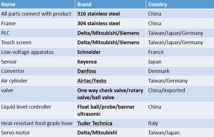 3. தயாரிப்புடன் தொடர்பு கொள்ளும் அனைத்து கூறுகளும் இறக்குமதி செய்யப்பட்ட 316 எல் எஃகு மூலம் தயாரிக்கப்பட்டு, சி.என்.சி இயந்திரங்களால் செயலாக்கப்படுகின்றன.